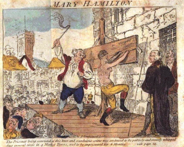 Two decades later, Mary Hamilton – a cross-dressing woman – was tried for fraud in 1746, posing as a man and marrying three women. At the time of her trial, many claimed that she had married at least fourteen women. While the entire circumstances of the crime remain unclear she was prosecuted for ‘having by false and deceitful practices endeavoured to impose on some of his Majesty’s subjects’. Thus, she was publicly humiliated and whipped in the market towns, and then imprisoned for six months. Similarly, in July 1777, Anne Marrow was subject to brutal treatment for fraud. She was guilty of ‘for going in man’s clothes, and personating a man in marriage, with three different women, […] and defrauding them of their money and effects’. Anne was sentenced to three months imprisonment and to stand in the pillory at Charing Cross, London: she was severely pelted by the mob and was blinded in both eyes. To mid-Victorian society, homosexual communities challenged the heteronormative order and thus existence of such a culture was denied. Anxieties around sexual orientation extended well into the late nineteenth century (as evident in the 1895 trials of Oscar Wilde), and to the society, homosexuality was a symbol of sexual deviance that caused destabilisation of gender binaries.